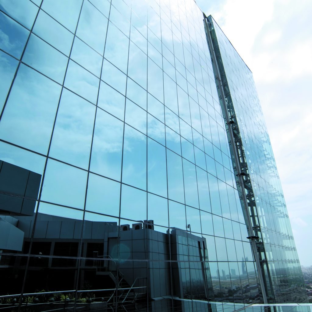Le vitrage Extérieur Collé (VEC), donne aux bâtiments l’image d’une peau de verre parfaitement lisse ou façade « tout verre » sans parties saillantes de cadre.